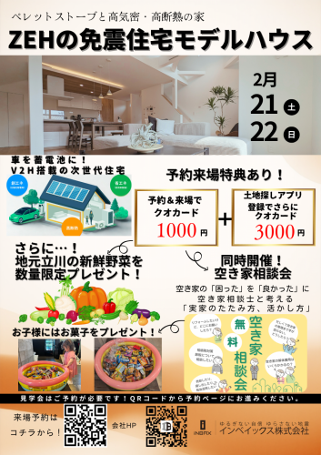 - まずはイベントの基本情報をサクッとチェック。 開催日: 2月21日(土)・22日(日) 見どころ ・ZEH(ネット・ゼロ・エネルギー・ハウス)基準の省エネ性能 ・地震の揺れをいなす「新・...