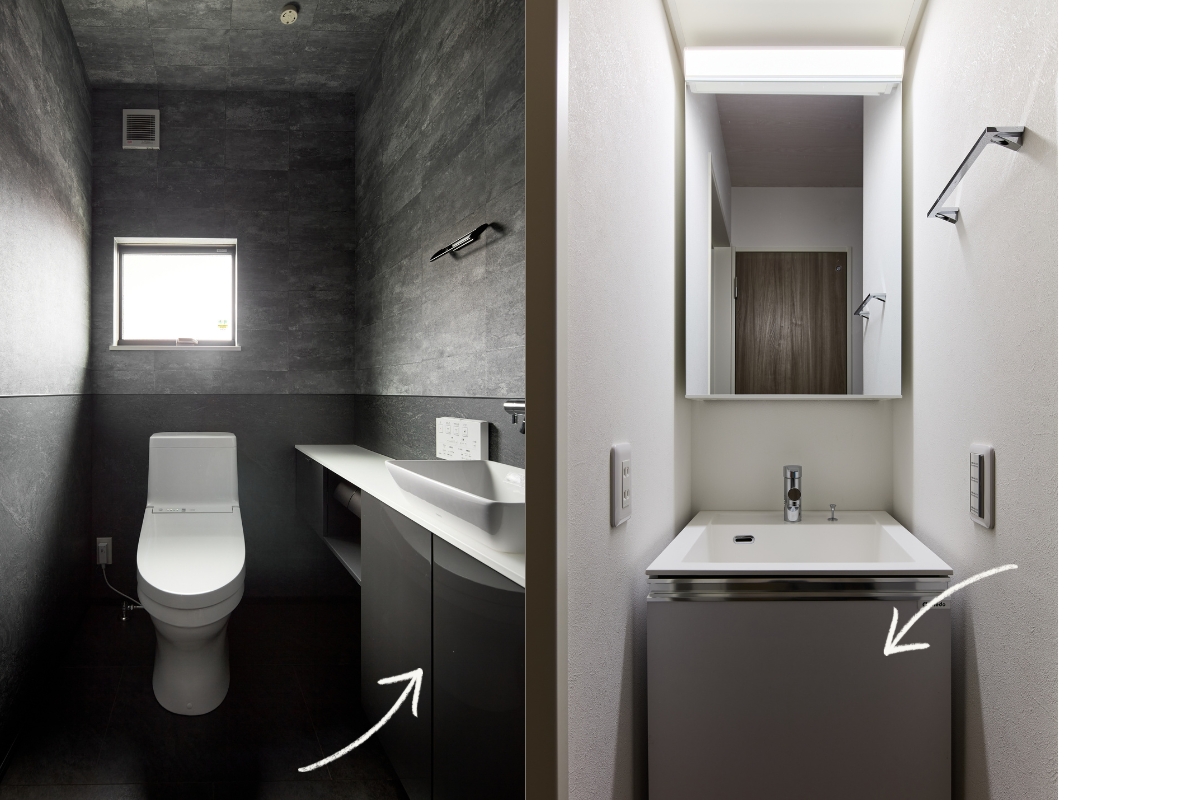 日用品は隠す収納でスッキリ清潔感を保ちます。