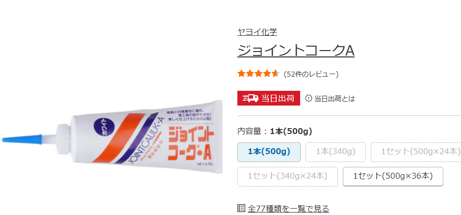 この補修作業は自分で行うことが出来、ホームセンターで市販されている「ジョイントコーク(ホワイト)¥600~700」を用いて簡単に行うことが出来ます。