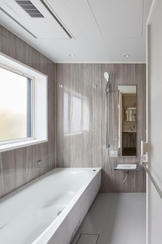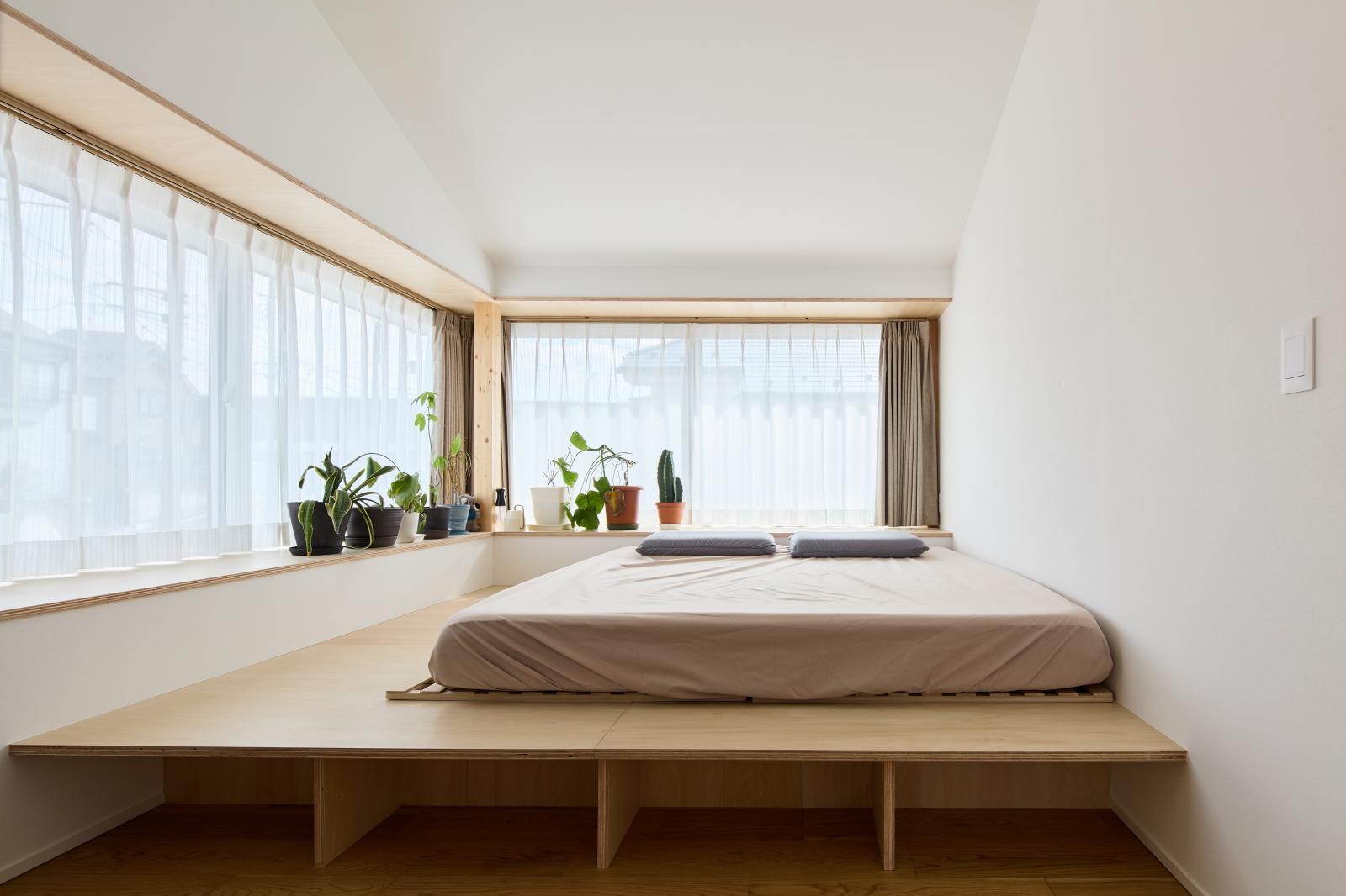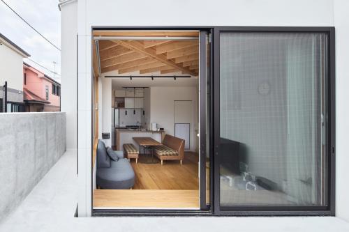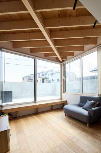 大きな窓と梁が描く、解放の木空間